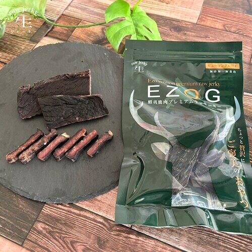 北海道のエゾ鹿肉100%で作るヒューマングレードのワンちゃん用生ジャーキーです。