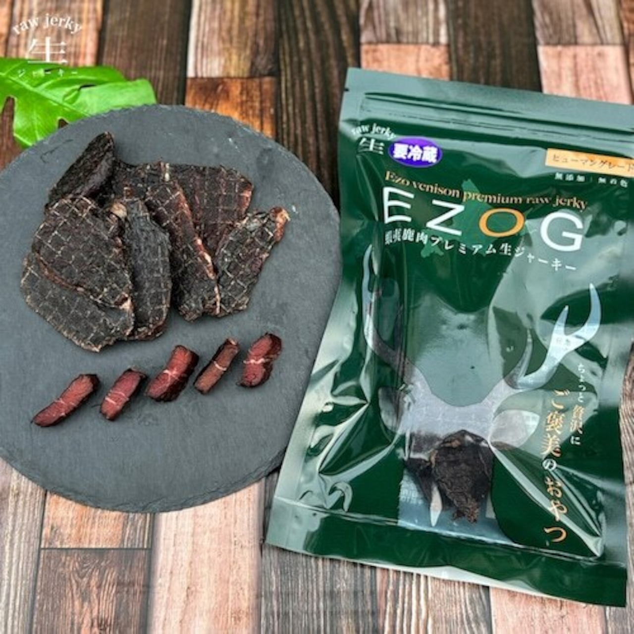 北海道のエゾ鹿肉100%で作るヒューマングレードのワンちゃん用生ジャーキーです。